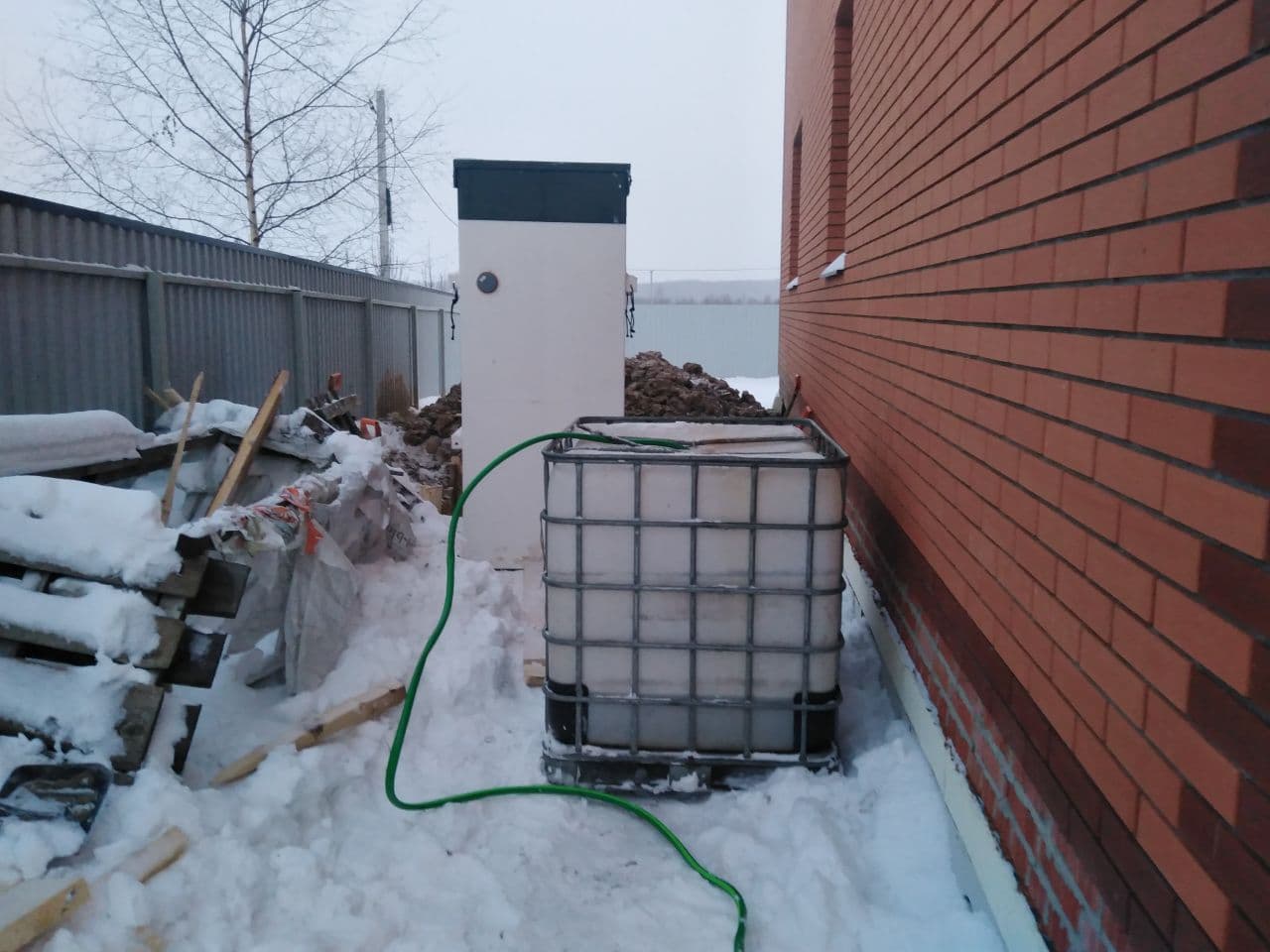 Очень часто требуется поднять уровень воды в колодце, особенно это актуально в зимний период. Куба хватит на неделю проживания (туалет, душ, посудомоечная машина, стиральная машина)